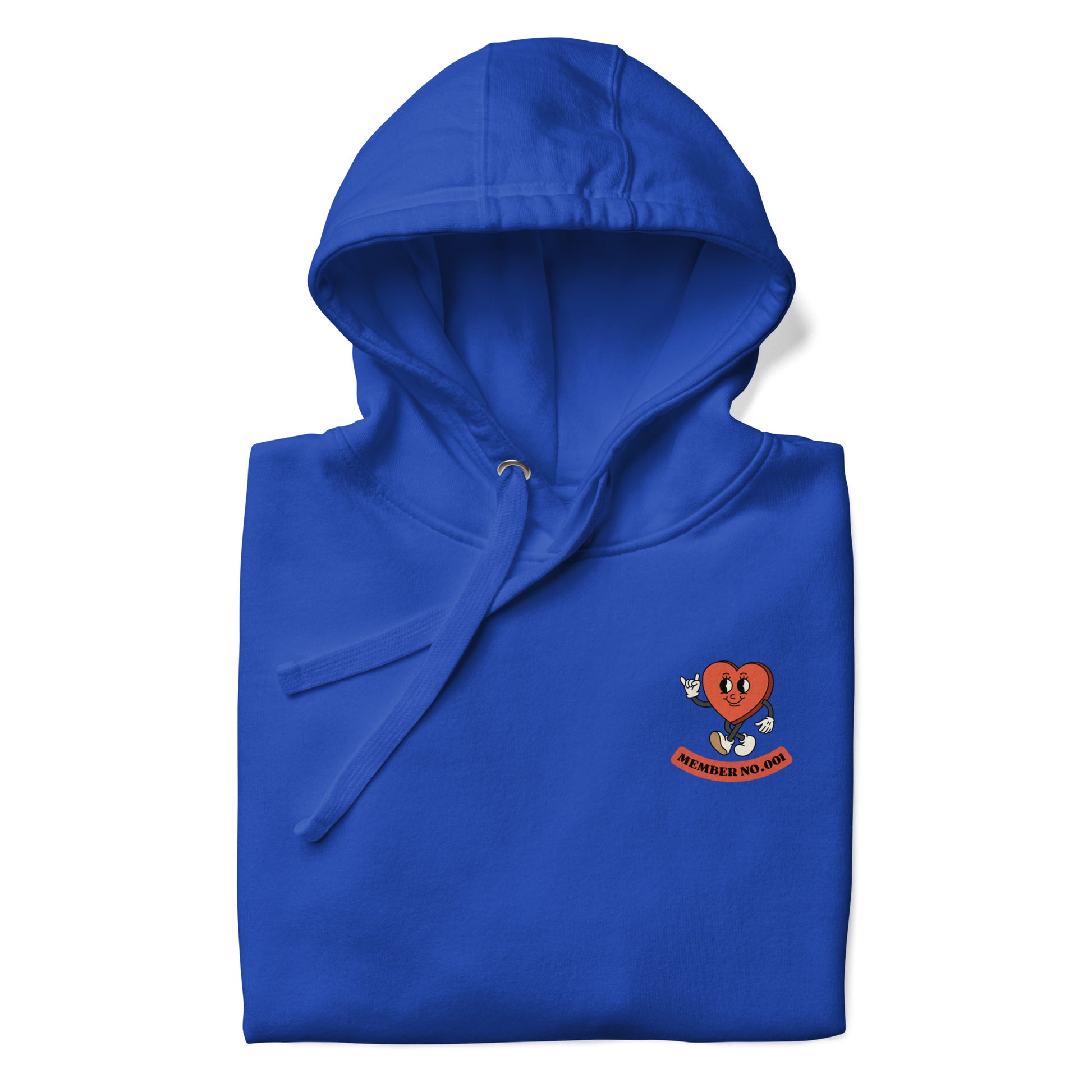 Mit diesem einzigartigen Hoodie setzt du nicht nur ein Statement für Selbstliebe, sondern fühlst dich auch rundum wohl. Auf der Vorderseite trägt er eine süße Herzfigur mit der Aufschrift "Member No.001", während auf der Rückseite die liebevolle Erinnerung steht: "Be kind to yourself today."