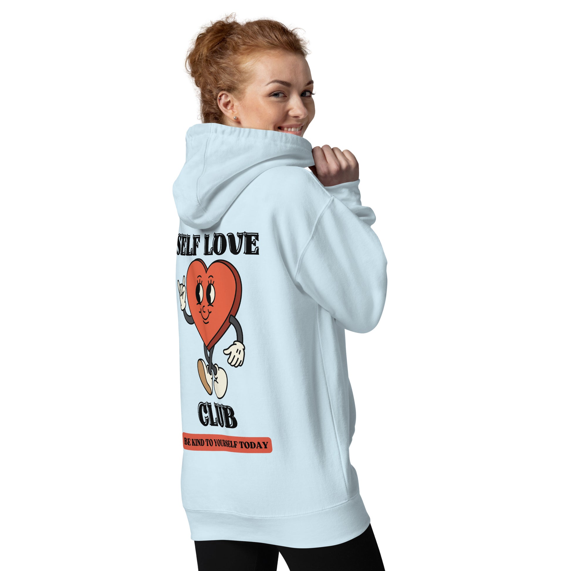Mit diesem einzigartigen Hoodie setzt du nicht nur ein Statement für Selbstliebe, sondern fühlst dich auch rundum wohl. Auf der Vorderseite trägt er eine süße Herzfigur mit der Aufschrift "Member No.001", während auf der Rückseite die liebevolle Erinnerung steht: "Be kind to yourself today."